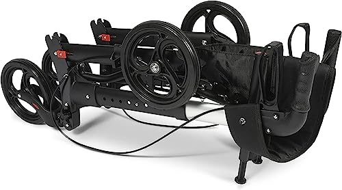 Dunimed Leichtgewicht Faltbarer Rollator – Einfach Faltbar für Kofferraum klappbar Reise – Höhe verstellbar – Inklusive praktischer Tasche unter dem Sitz – Gehwagen – Laufhilfe – Gehhilfe – Schwarz