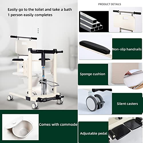 FANGX Hydraulischer Patientenlifter-Stuhl für den Heimgebrauch, Tragbarer Duschrollstuhl mit weichem Kissen und Bettpfanne, Höhenverstellung/180° geteilter Sitz/Universalrad, Belastung 264 lb