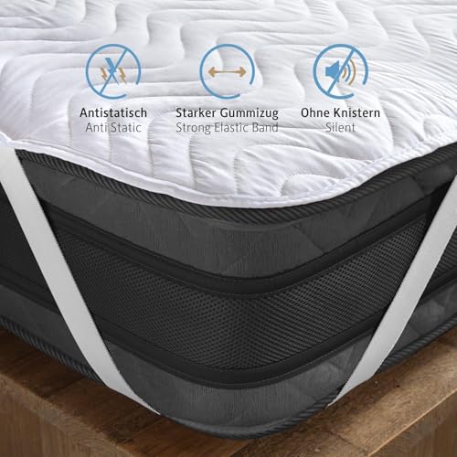 - Premium Qualität: Komfortec Matratzentopper sind Oeko-TEX zertifiziert und bestehen aus hautfreundlicher 100% weicher Mikrofaser. Sie enthalten keine schädlichen Stoffe. Gefüllt mit Silikonfasern und mit Rautenmuster-Steppung, gewährleisten sie höchsten Komfort. Jetzt können Sie genüsslich schlafen.