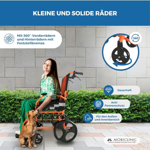 Mobiclinic, Orthopdischer Rollstuhl, Modell Pirmide, Aluminium, faltbar, Bremse an den Griffen, Europische Marke, Sitz 46 cm, Fr Behinderte, Fusttze, Armlehnen, Farbe: orange