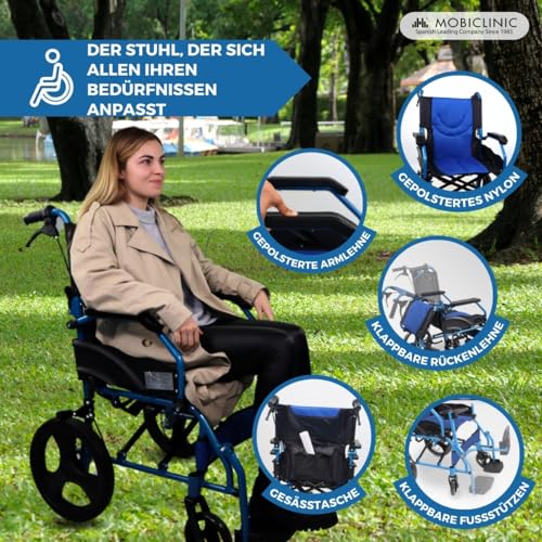 Mobiclinic, Transitrollstuhl, Modell Pirmide, Aluminium, faltbar, Bremse an den Griffen, fr Behinderte und Senioren, Fusttze, Armlehnen, leicht, orthopdisch, Sitzflche 46 cm
