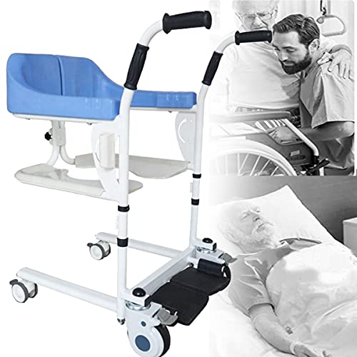SUNWEII Patientenlifter Rollstuhllifte für Zuhause HöHenverstellbar Duschstuhl für Senioren,Patiententransferstuhl, Multifunktions-Patientenlifter Einfacher Transfer zu Toilette und Badezimmer,Blue